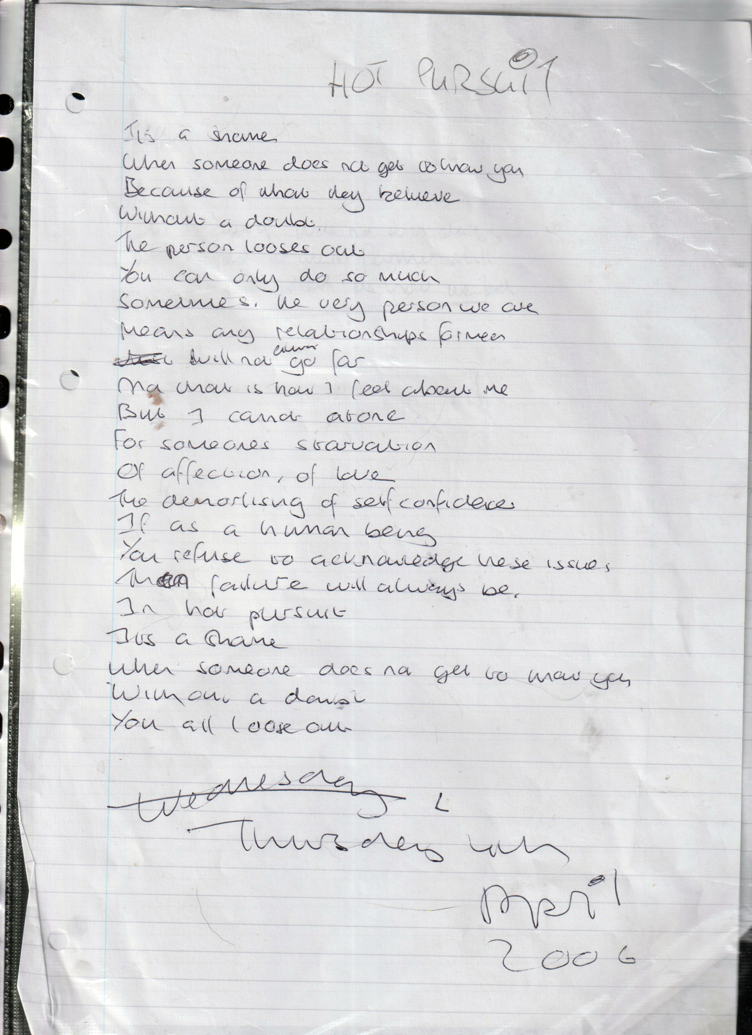 Hot Pursuit – Written Thursday 4th April 2006 (Aged 31)