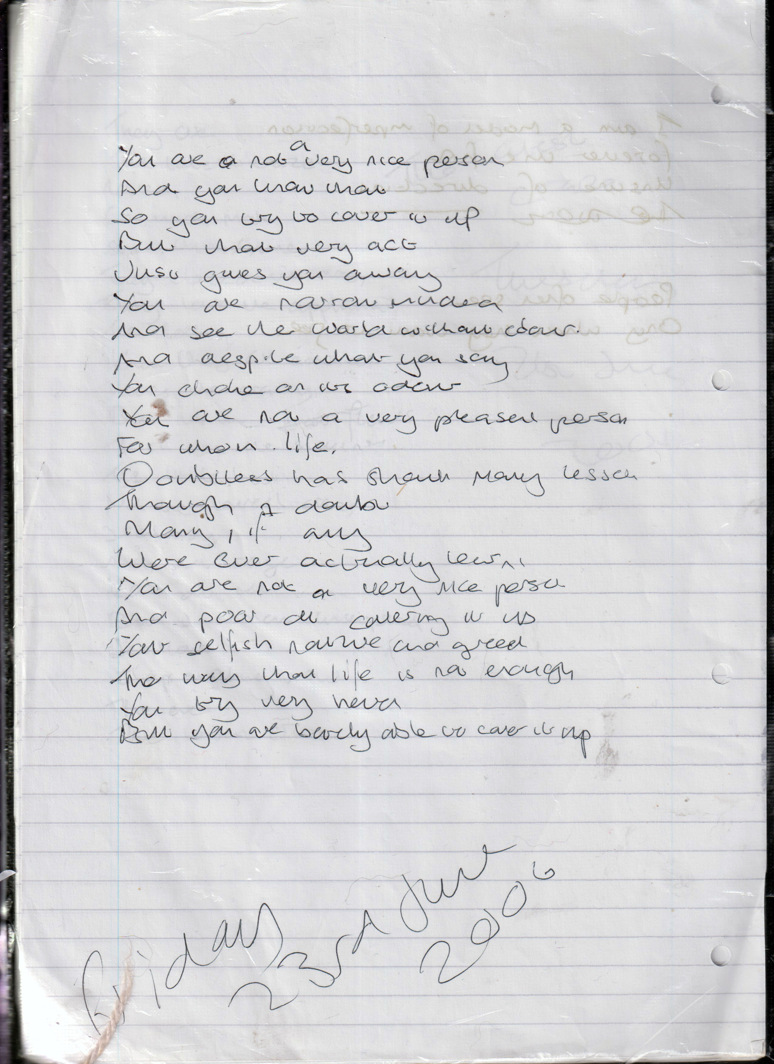 Not A Very Nice Person – Written Friday 23rd June 2006 (Aged 31)