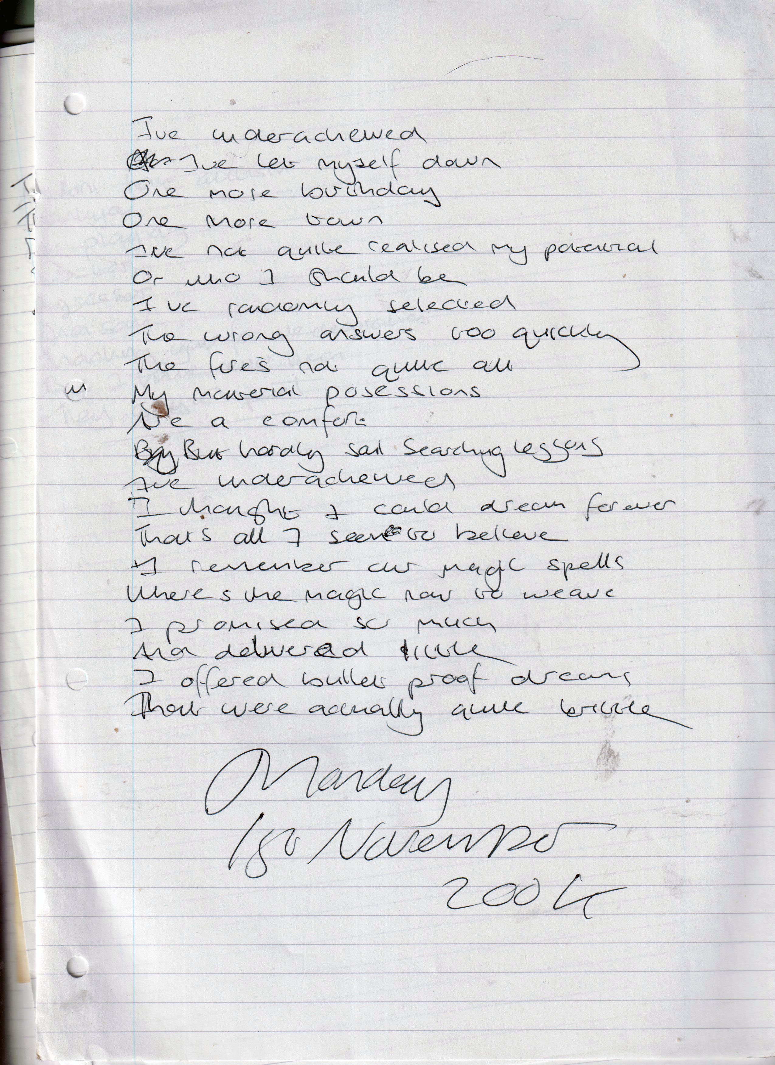 Let Myself Down Again – Written Monday 1st November 2004 (Aged 29)
