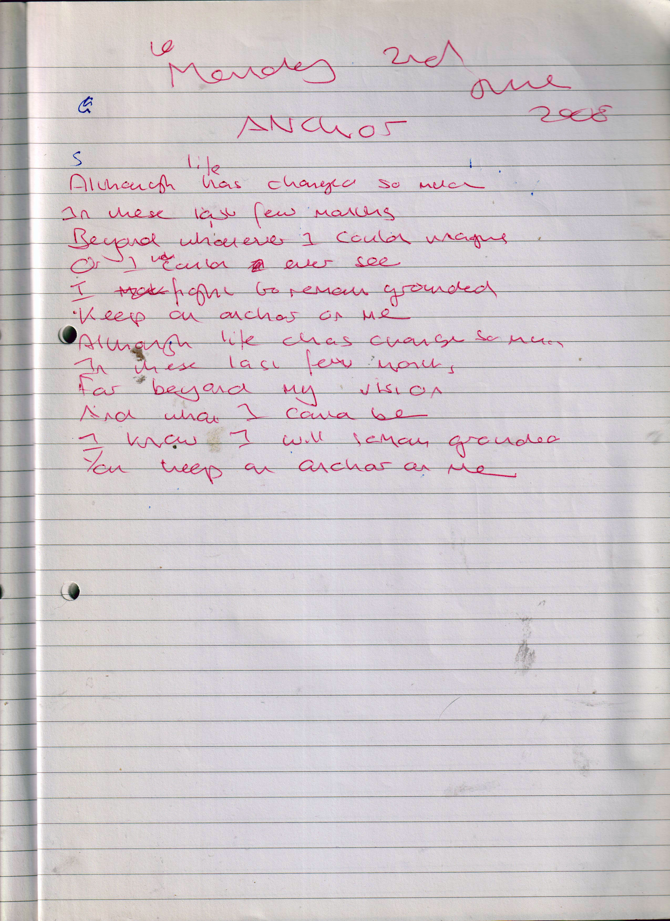 Anchor – Written Monday 2nd June 2008 (Aged 33)