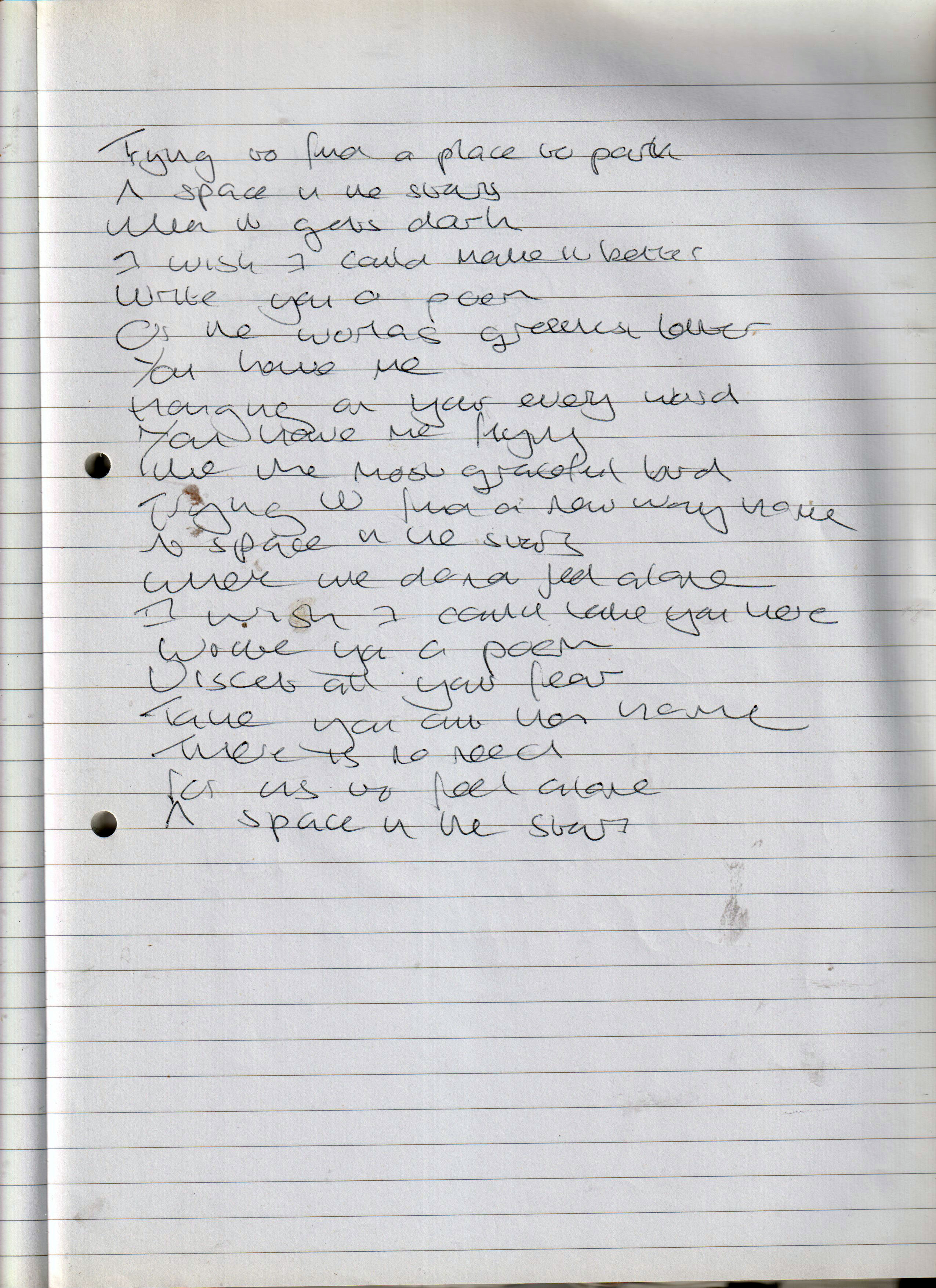 A Place To Park – Written June 2008 (Aged 33)