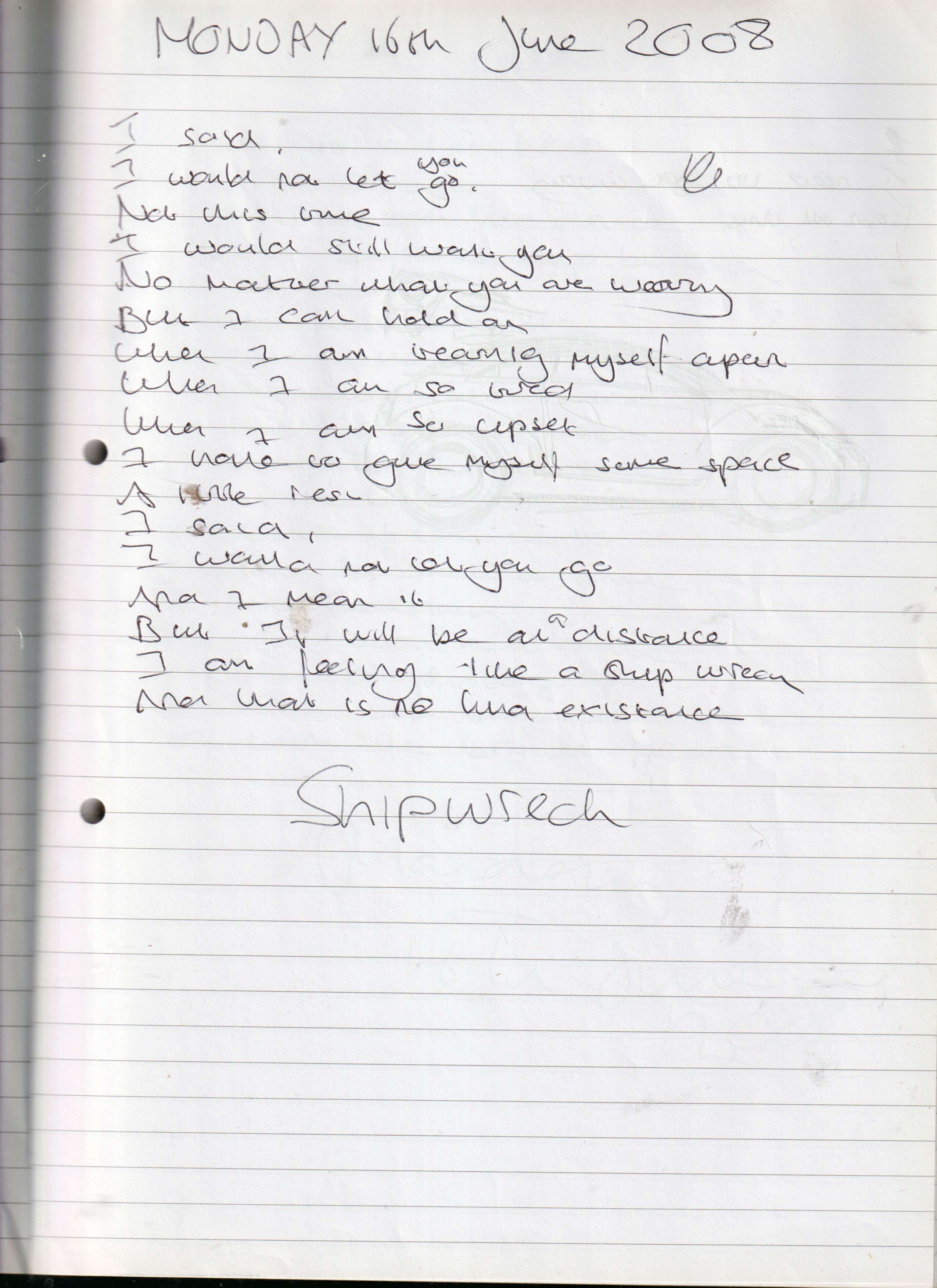 Shipwreck – Written Monday 16th June 2008 (Aged 33)