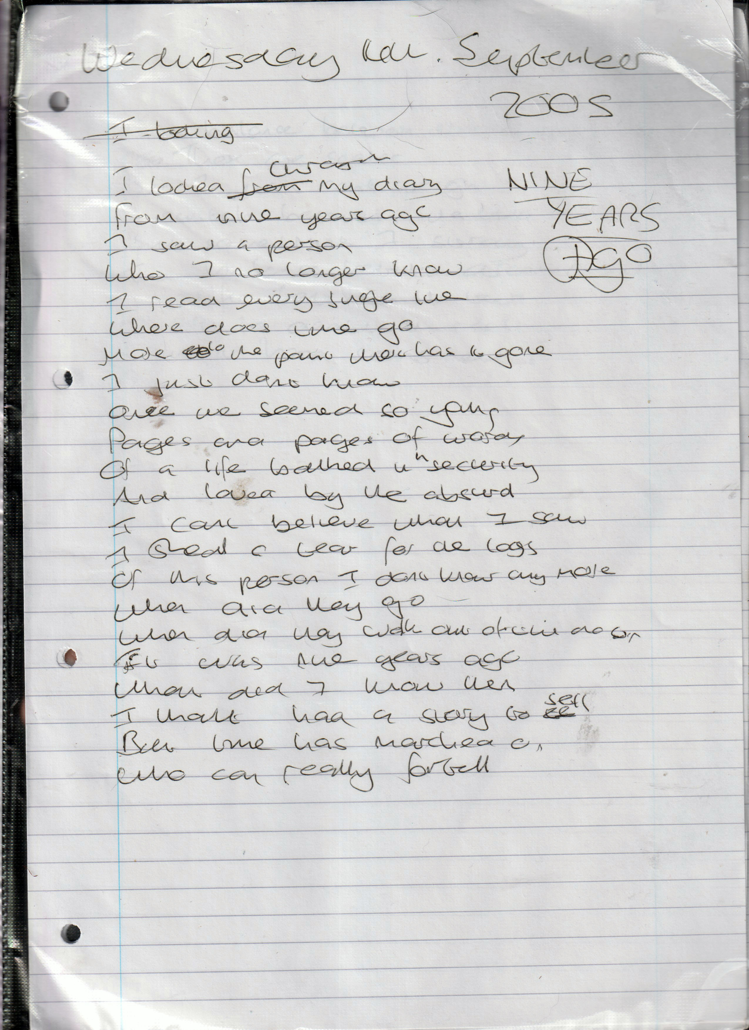 Nine Years Ago – Written Monday 14th September 2005 (Aged 30)
