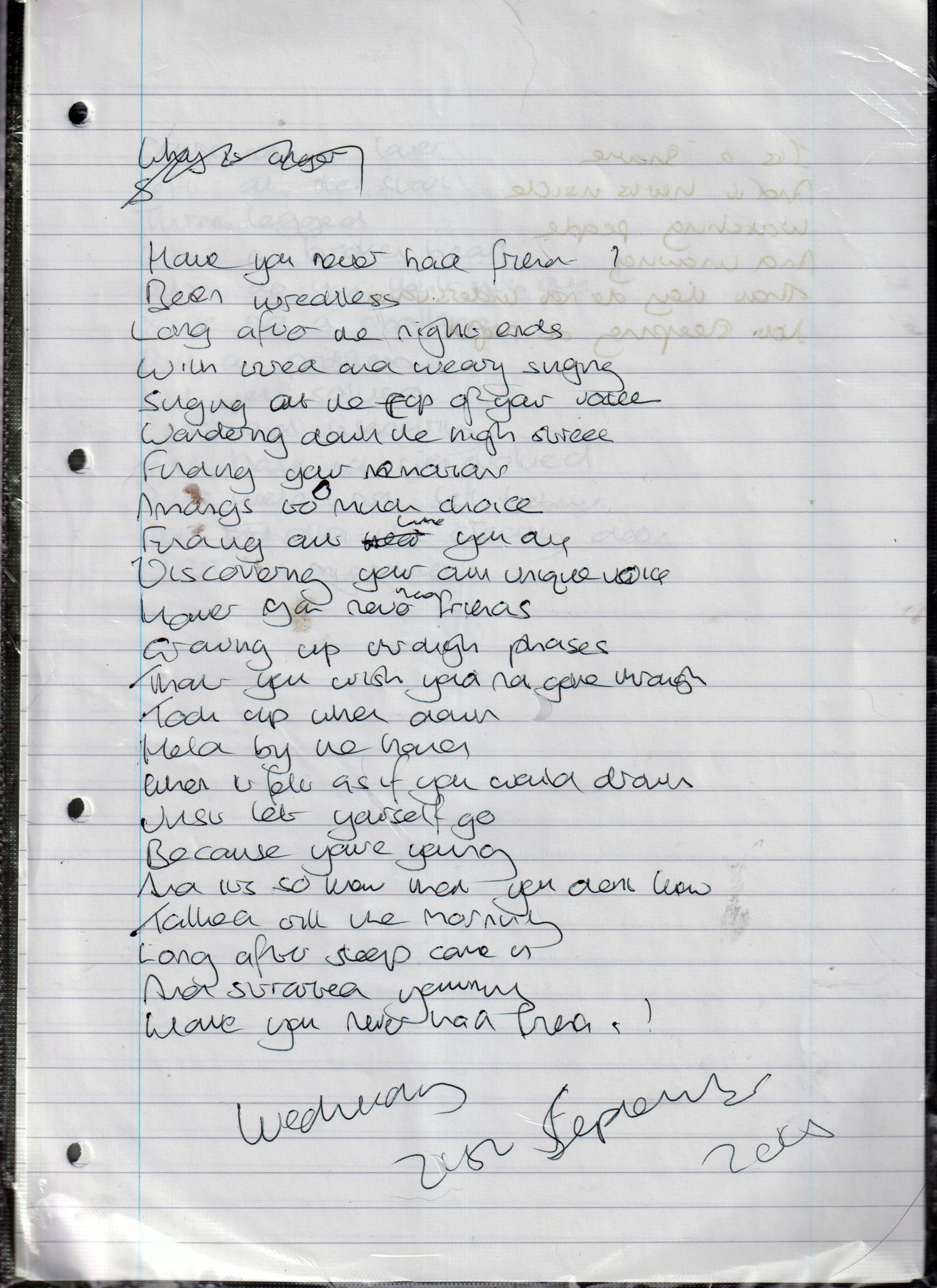 Friendship Connections – Written Wednesday 21st September 2005 (Aged 30)