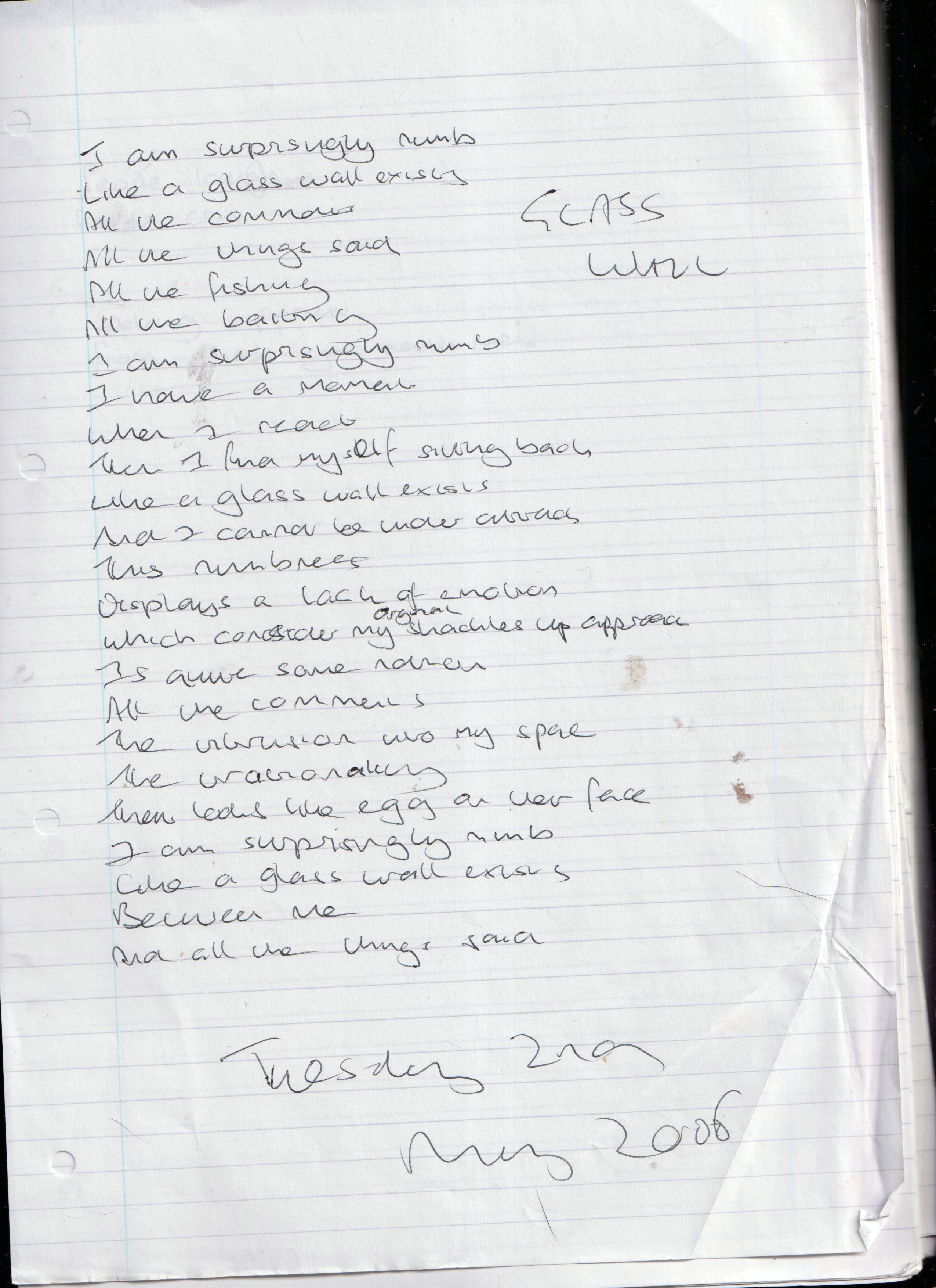 Glass Wall – Written Tuesday 2nd May 2006 (Aged 31)