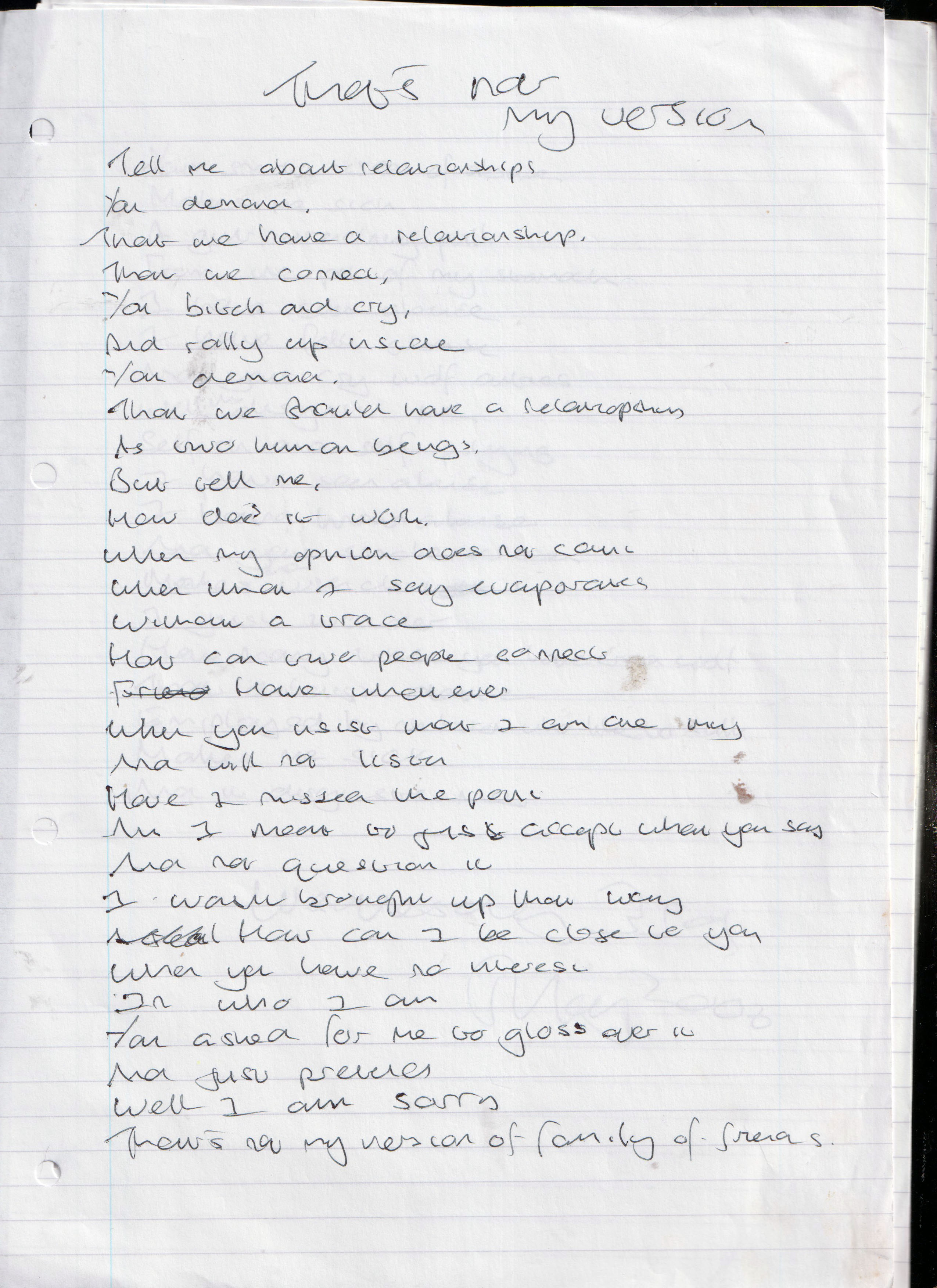 That’s Not My Version – Written May 2006 (Aged 31)