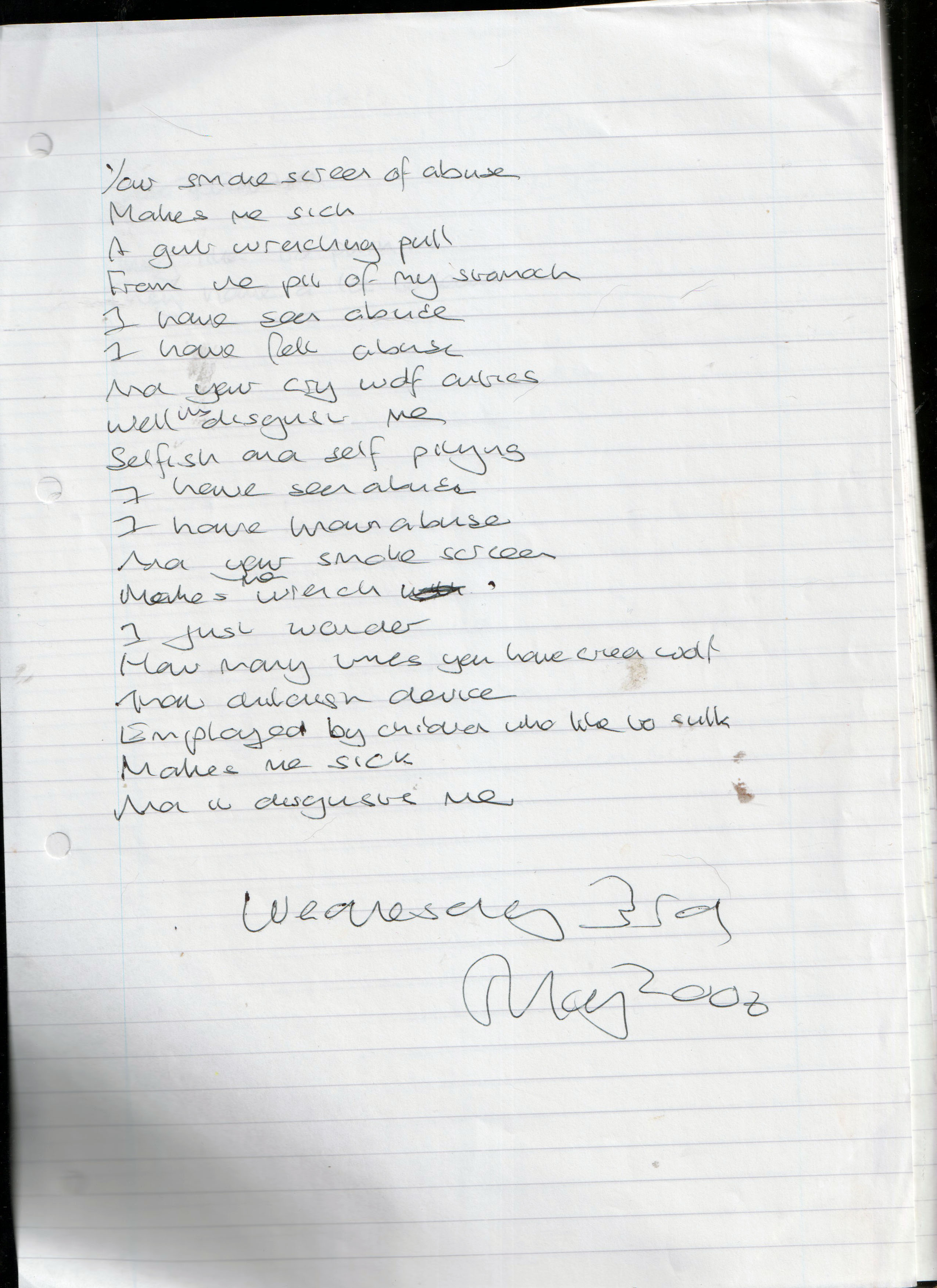 Cry Wolf – Written Wednesday 3rd May 2006 (Aged 31)