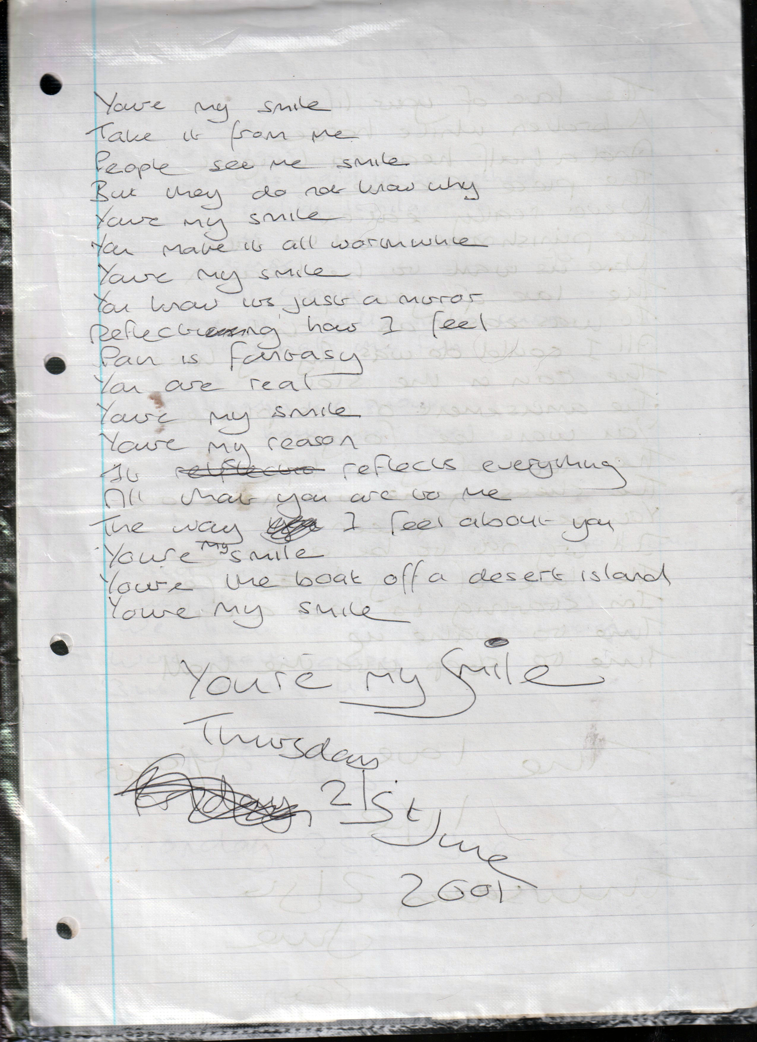 You Are My Smile – Written Thursday 21st June 2001 (Aged 26)