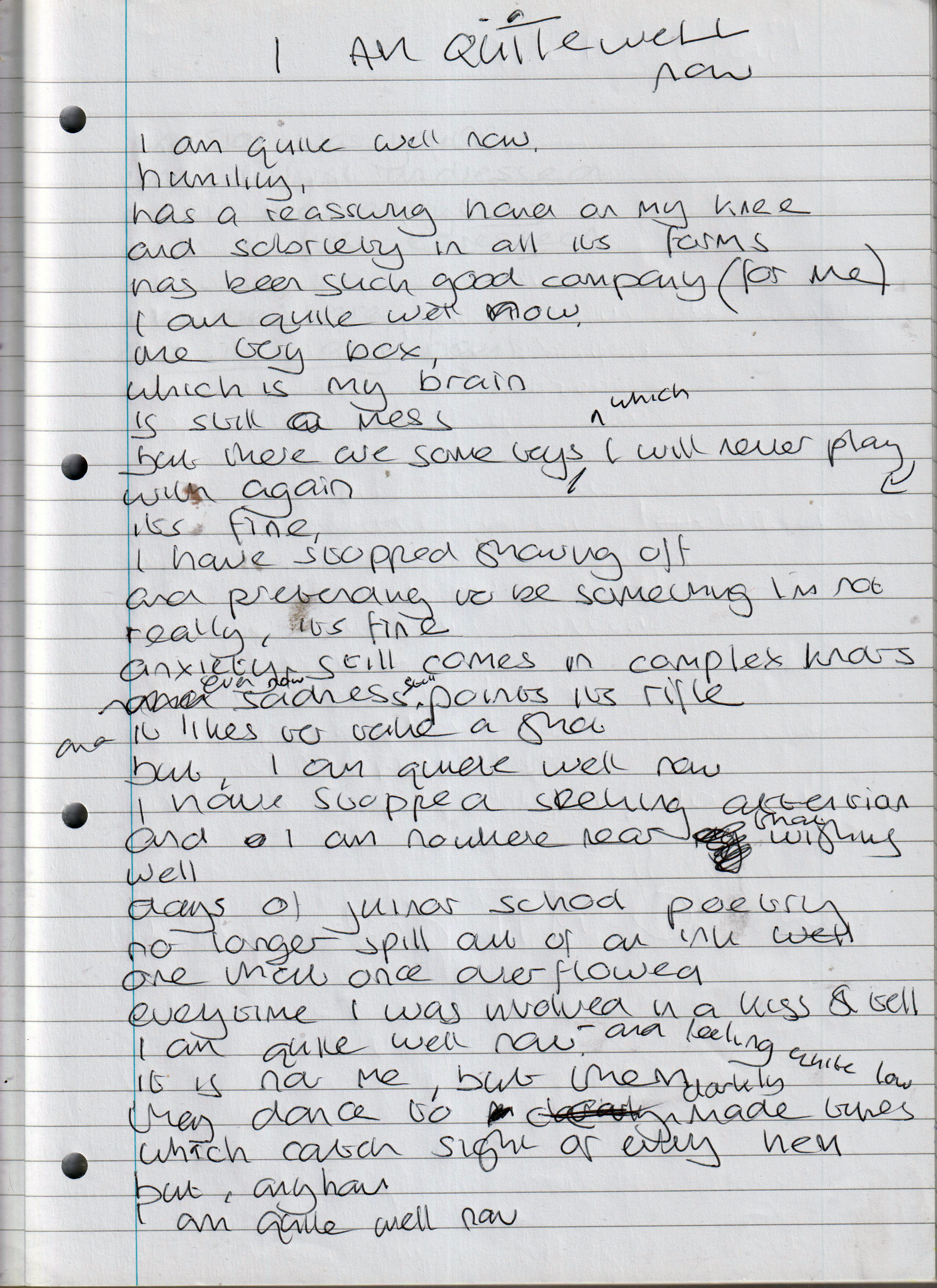 I Am Quite Well Now – Written October 2023 (Aged 48)