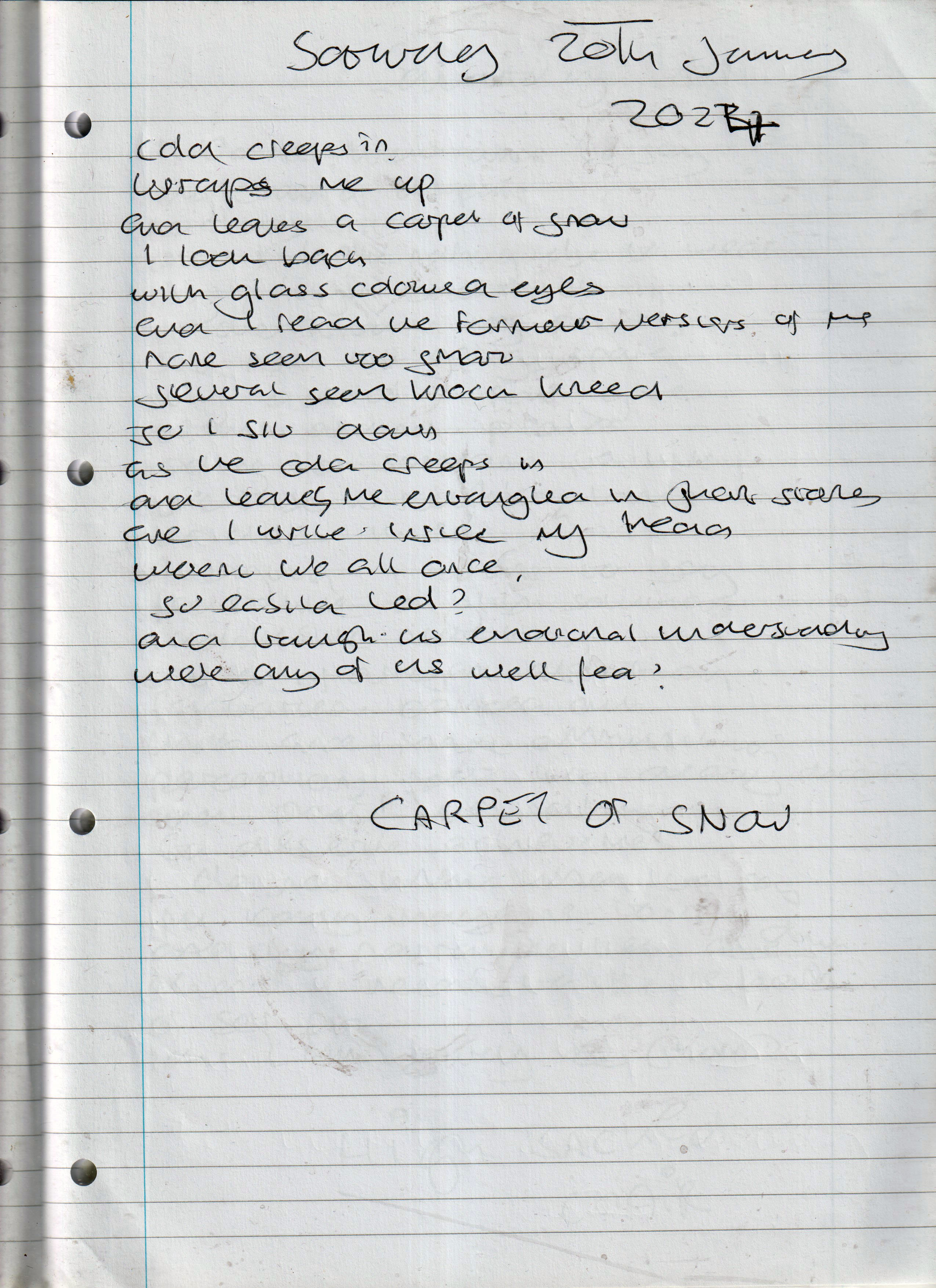 Carpet of Snow – Written Saturday 20th January 2024 (Aged 48)