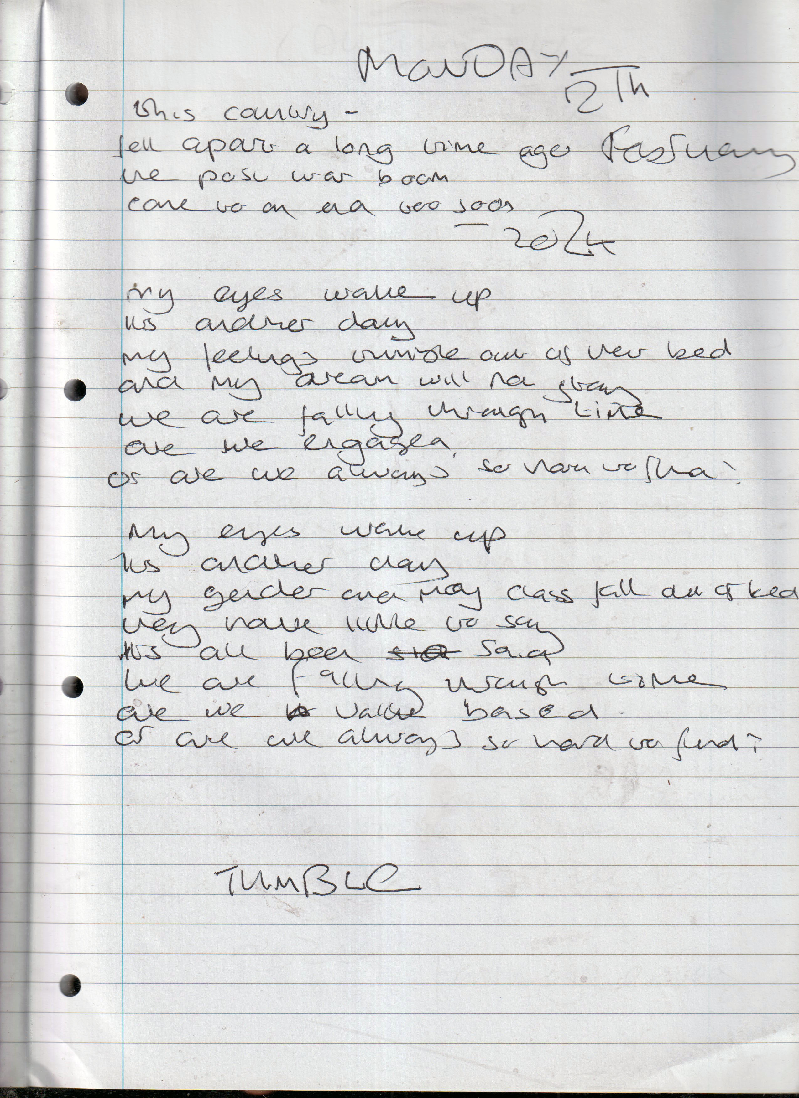 Tumble – Written Monday 12th February 2024 (Aged 48)