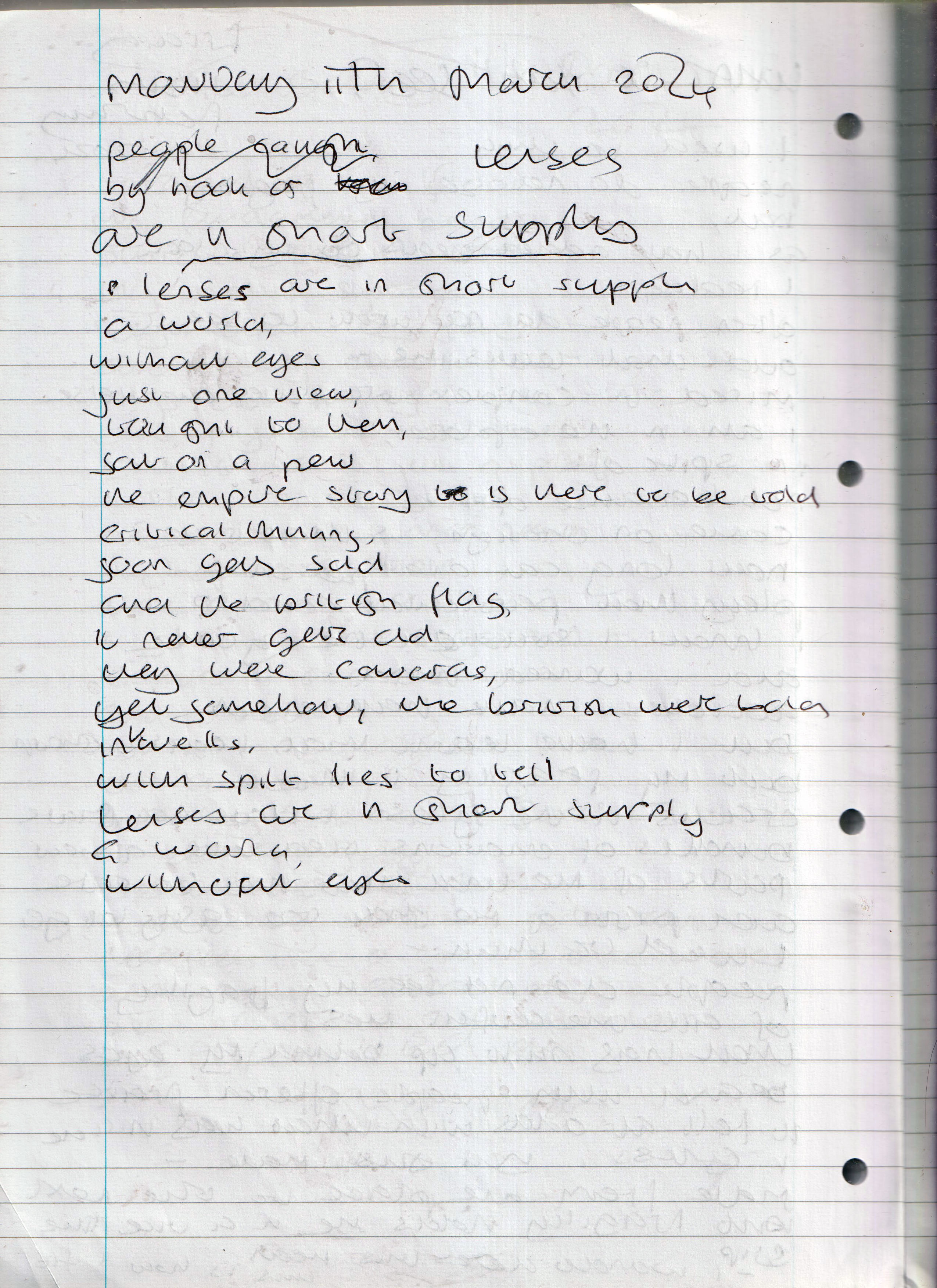 Lenses Are in Short Supply – Written Monday 11th March 2024 (Aged 49)