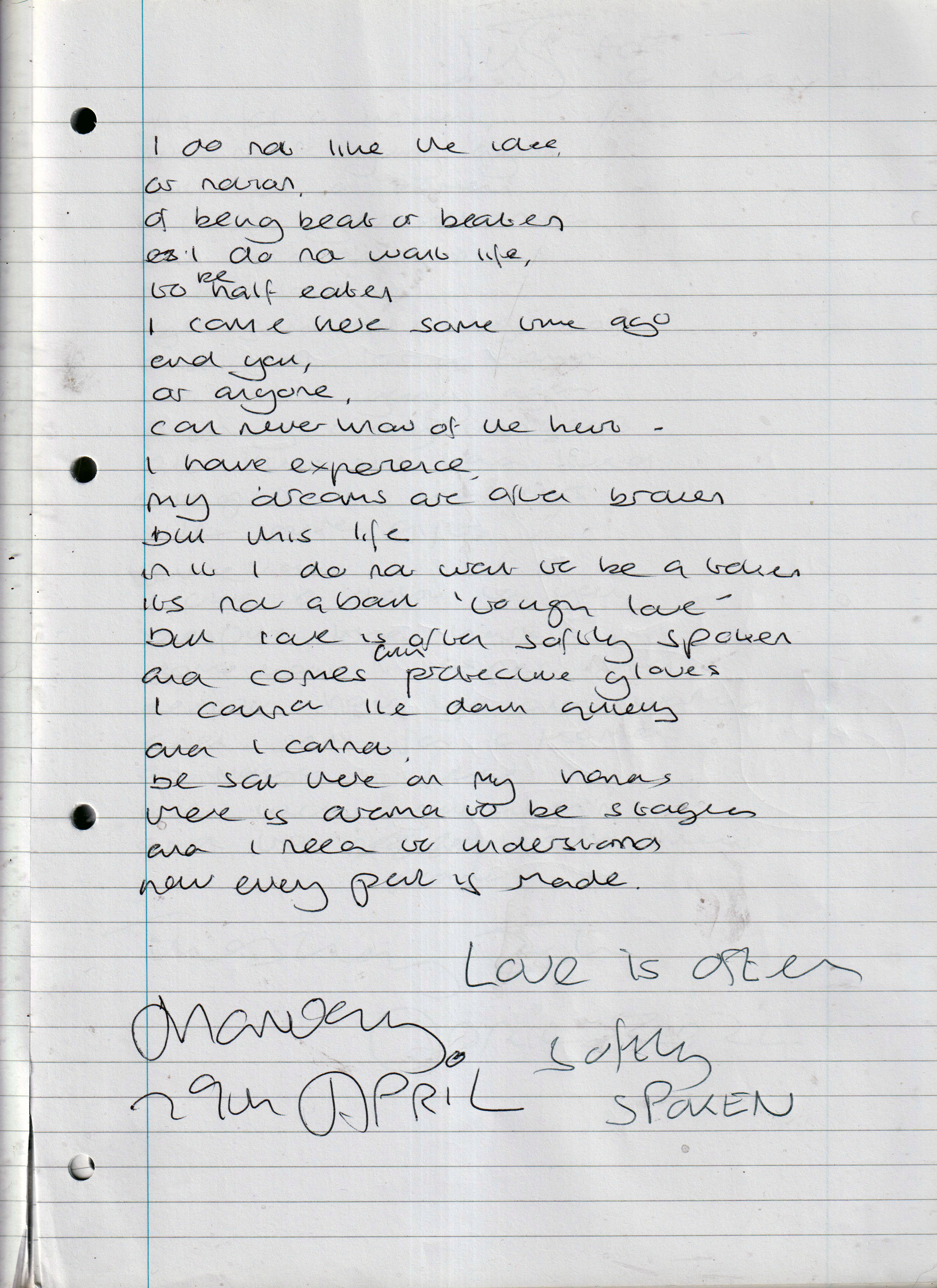 Love is Often Softly Spoken – Written Monday 29th April 2024 (Aged 49)