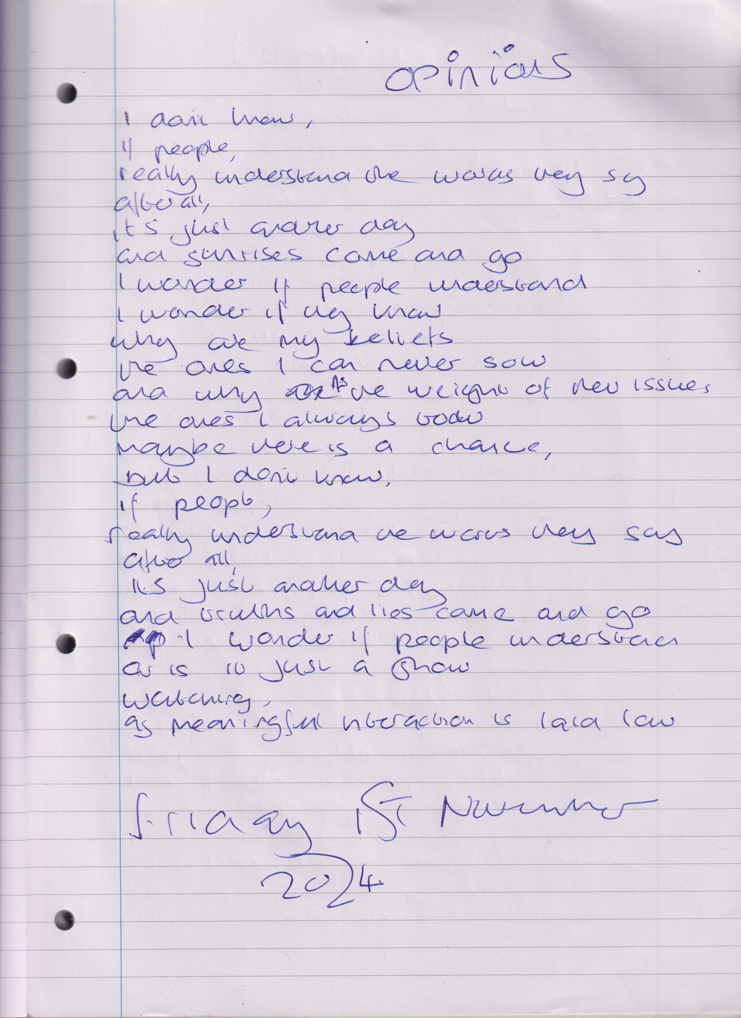Opinions – Written Friday 1st November 2024 (Aged 49)