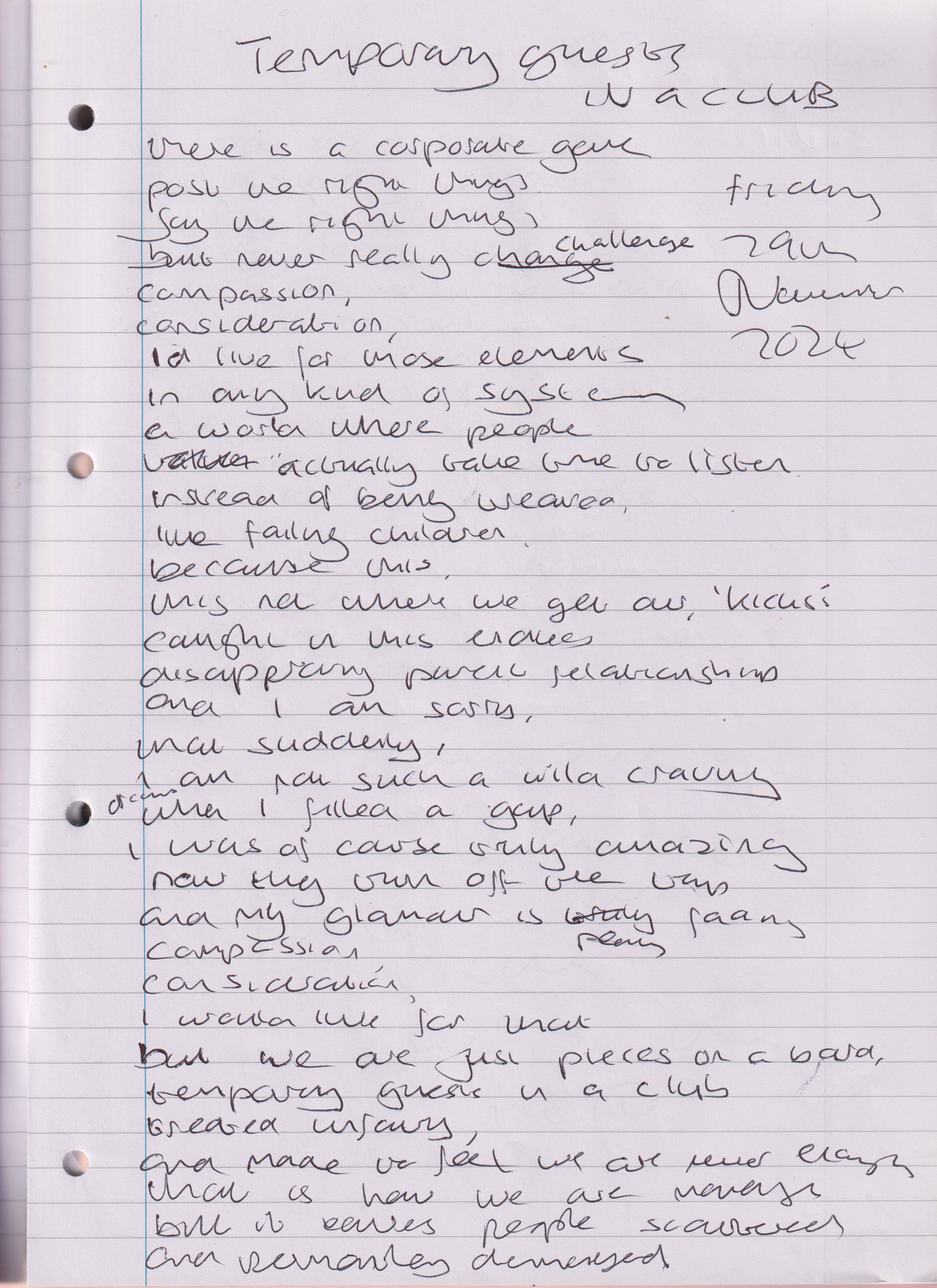 Temporary Guests In a Club – Written Friday 29th November 2024 (Aged 49)