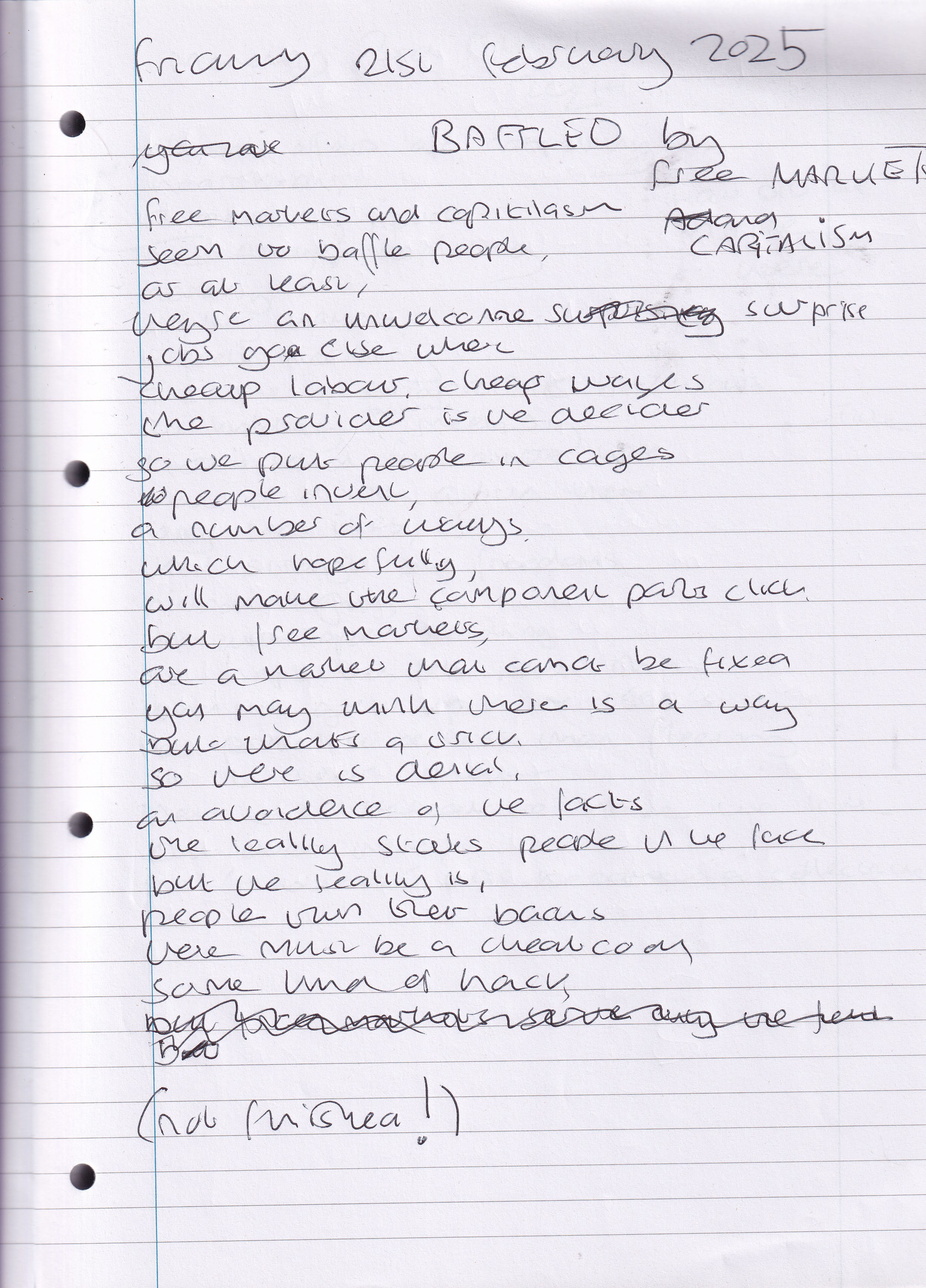 Baffled by Free Market Capitalism – Written Friday 21st February 2025 (Aged 49)