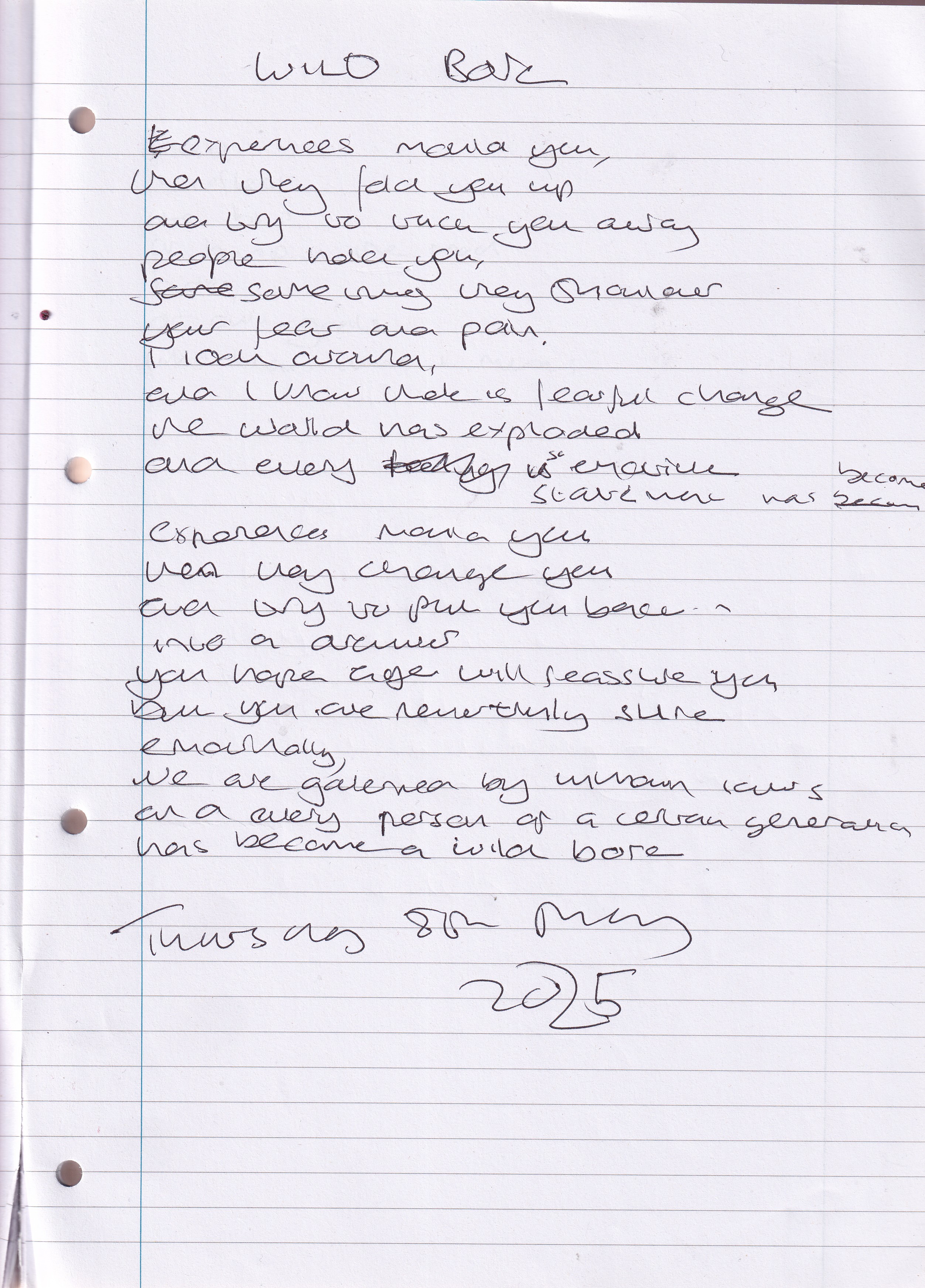 Wild Bore – Written Thursday 8th May 2025 (Aged 50)