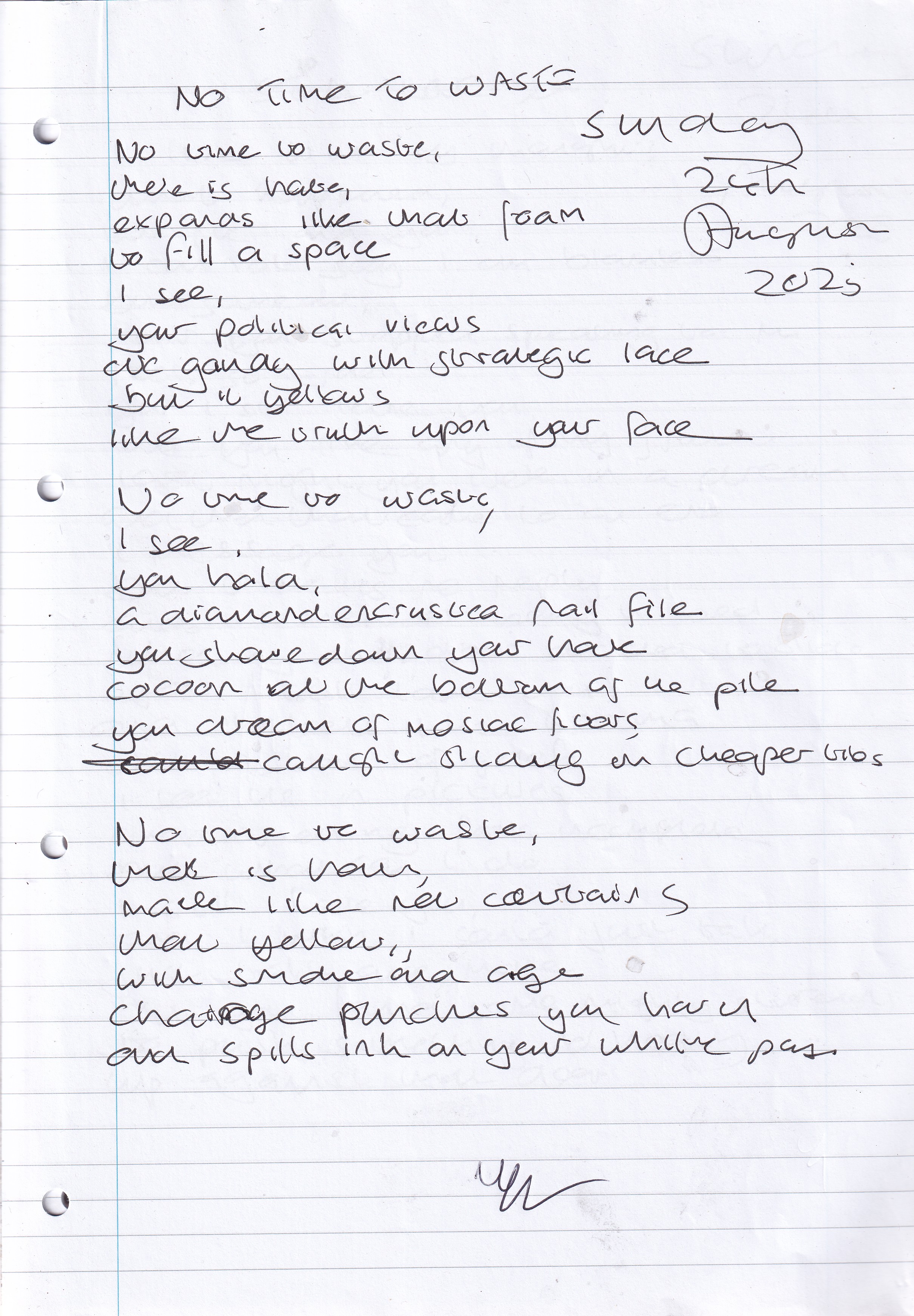 No Time To Waste – Written Sunday 24th August (Aged 50)