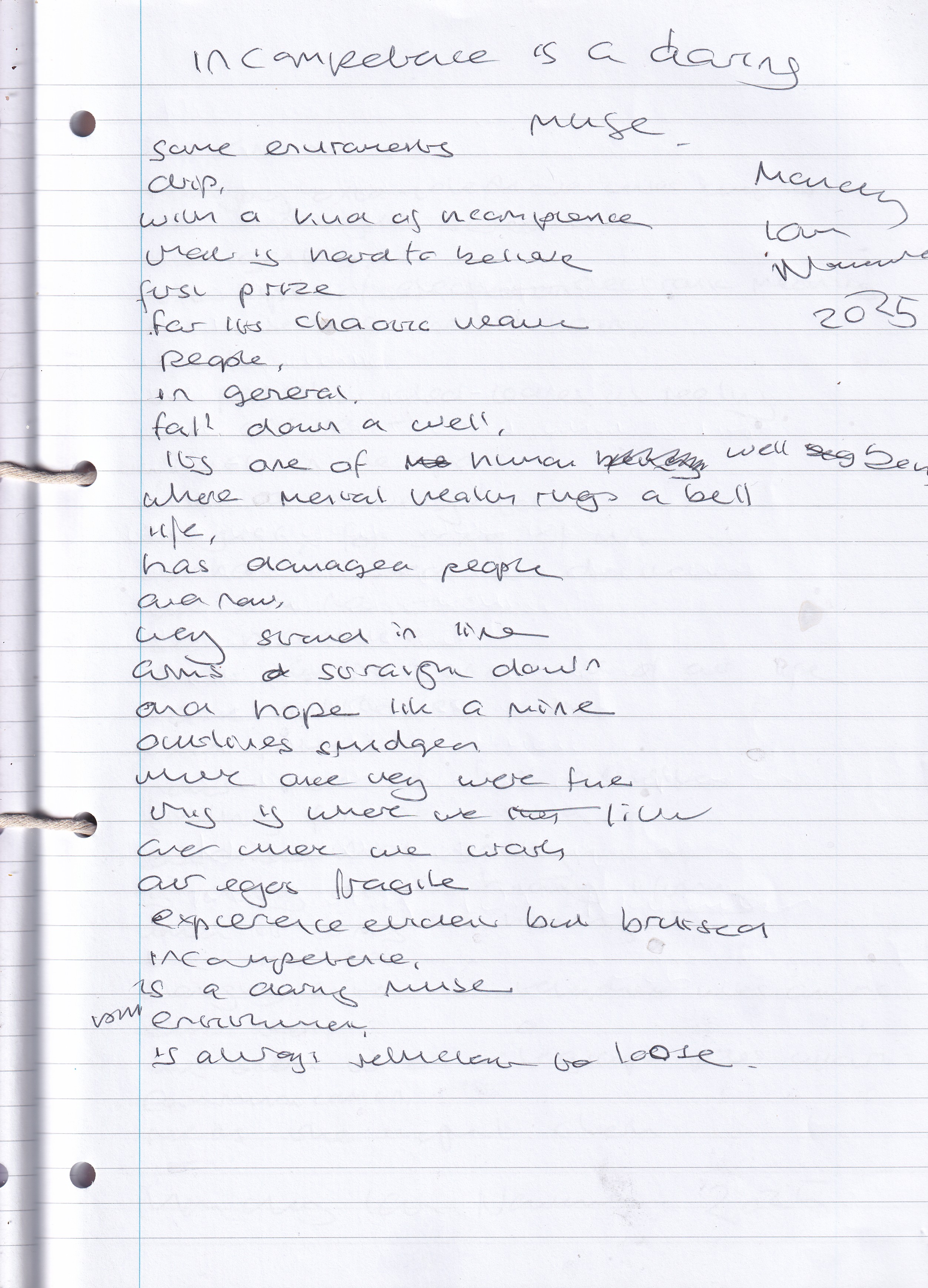 Incompetence Is A Daring Muse – Written Monday 10th November 2025 (Aged 50)