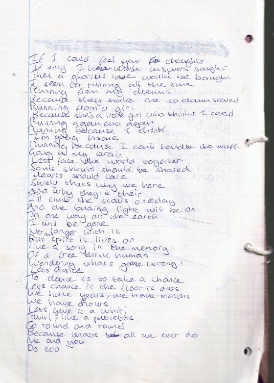Feel Your Thoughts – Most Likely Written December 1993 (Aged 18)