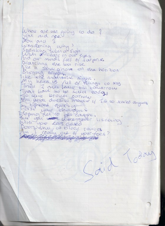 Said Today – Most Likely Written Between November / December 1993 (Aged 18)