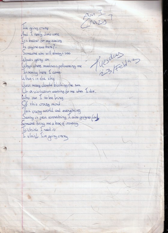 Am I Crazy? – Written Tuesday 23rd February 1993 (Aged 17)