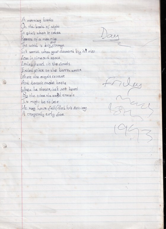 A New Beginning (A New Day) – Written Monday 15th March 1993 (Aged 18)