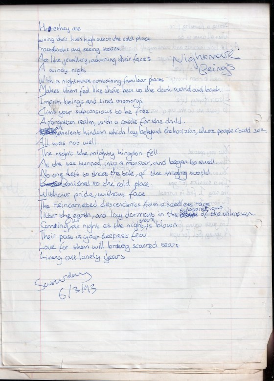 Nightmare Beings – Written Saturday 6th March 1993 (Aged 18)