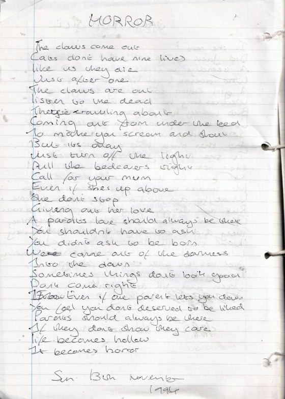 Horror – Written Sunday 13th November 1994 (Aged 19)