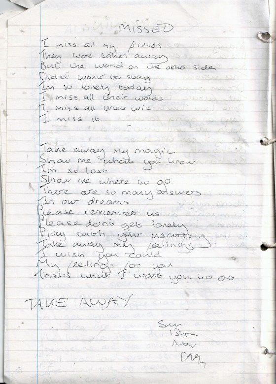 Missed – Written Sunday 13th November 1994 (Aged 19)
