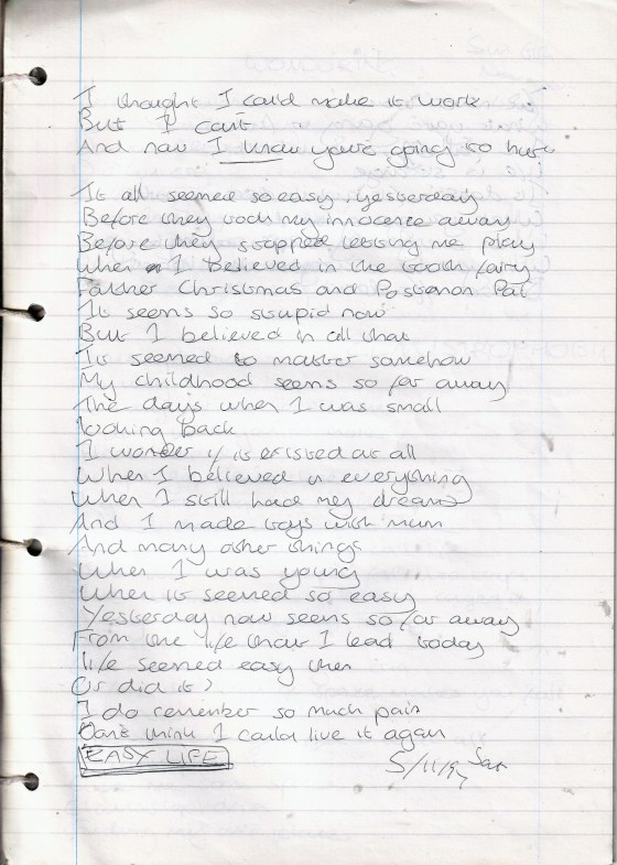 Easy Life – Written Saturday 5th November 1994 (Aged 19)