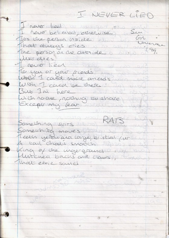I Never Lied – Written Sunday 6th November 1994 (Aged 19)