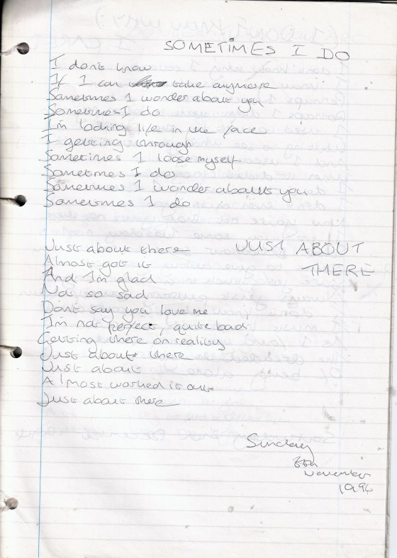Sometimes I Do – Written Sunday 6th May 1994 (Aged 19)