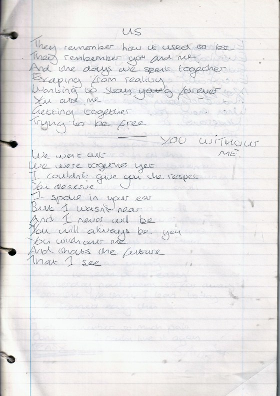 You Without Me – Written Saturday 5th November 1994 (Aged 19)