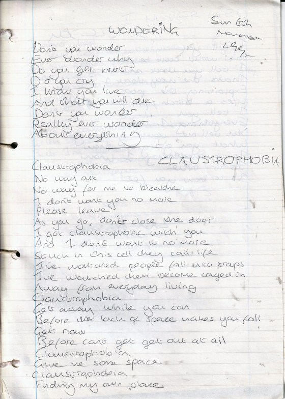 Claustrophobia – Written Sunday 6th November 1994 (Aged 19)