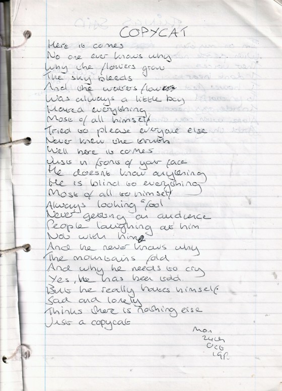 Copycat – Written Monday 24th October 1994 (Aged 19)
