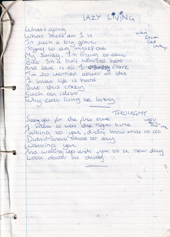 Lazy Living – Written Wednesday 24th October 1994 (Aged 19)