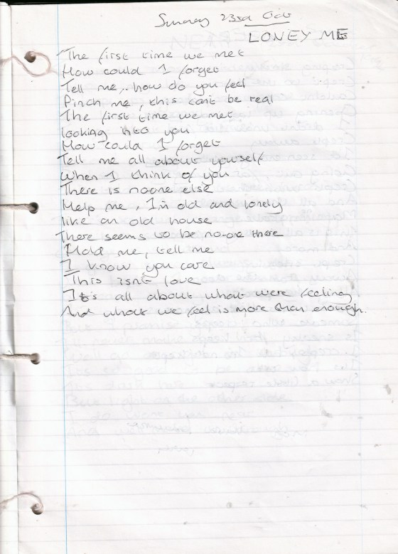 Lonely Me – Written Sunday 23rd October 1994 (Aged 19)