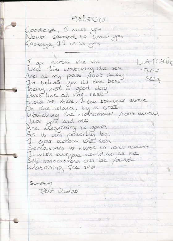 Watching The Sea – Written Sunday 23rd October 1994 (Aged 19)