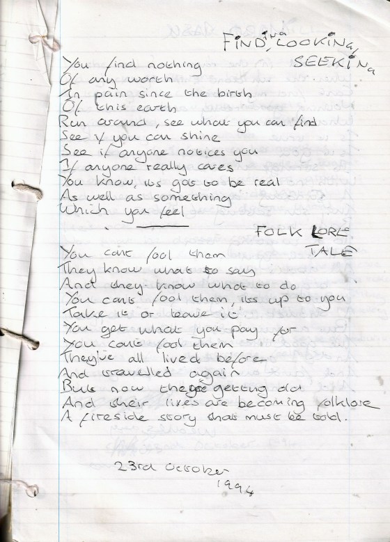 Finding, Looking, Seeking – Written Sunday 23rd October 1994 (Aged 19)