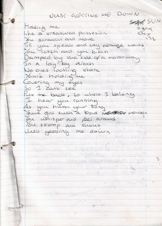 Just Getting Me Down – Written Sunday 23rd October 1994 (Aged 19)