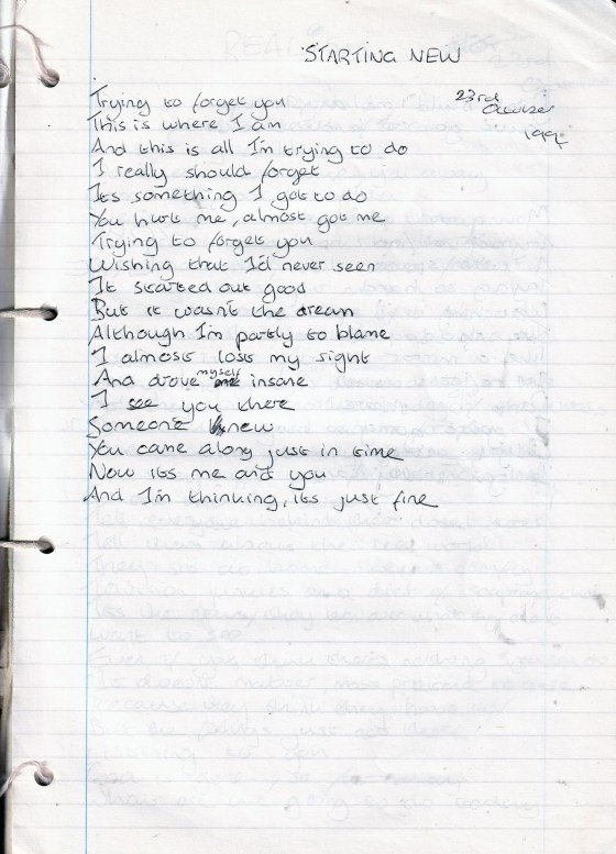 Starting New – Written Sunday 23rd October 1994 (Aged 19)