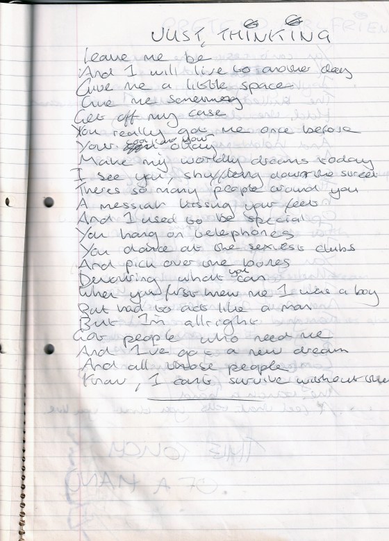 Just Thinking, Written Approx. Late 1993 or January 1994 (Aged 18)