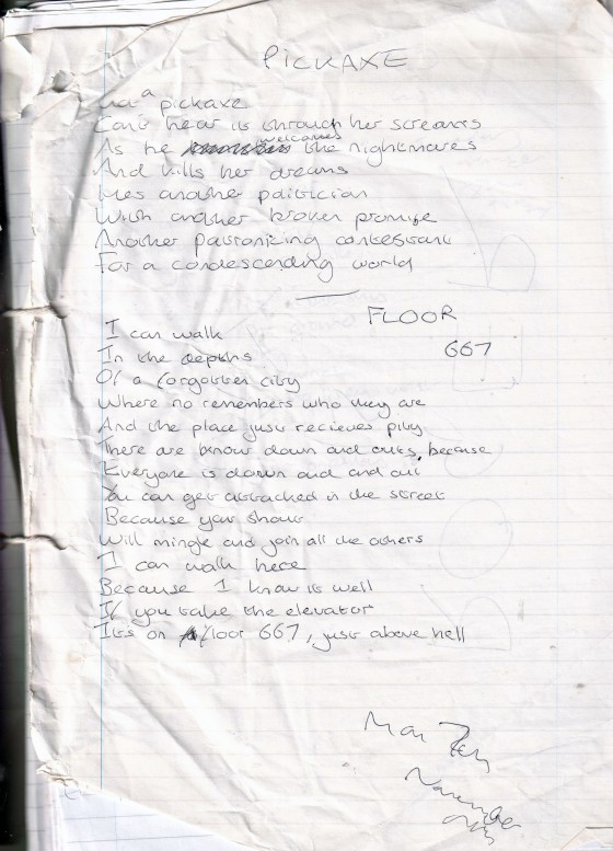 Pickaxe – Written Monday 7th November 1994 (Aged 19)