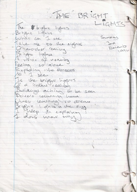 The Bright Lights – Written Sunday 4th December 1994 (Aged 19)
