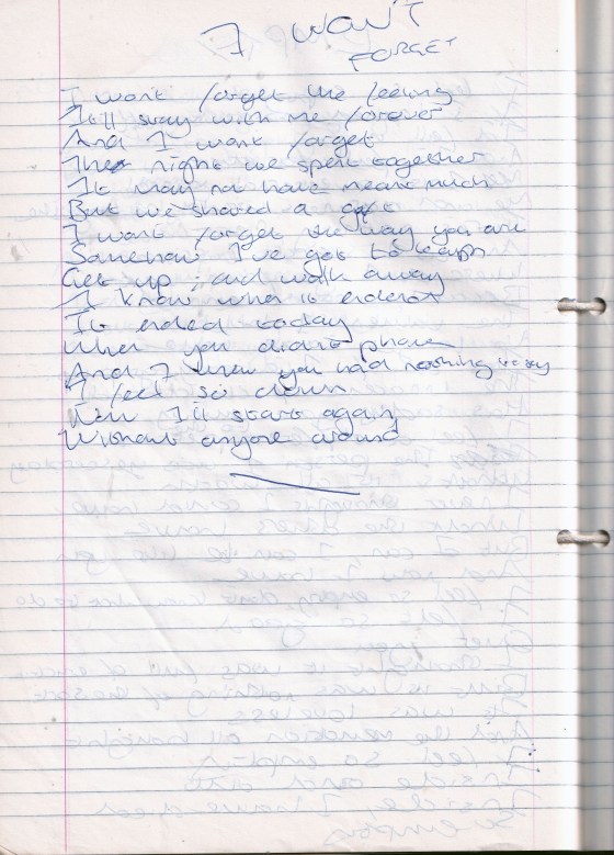 I Will Not Forget – Written Between Tuesday 15th February 1994 and October 1994 (Aged 18/19)