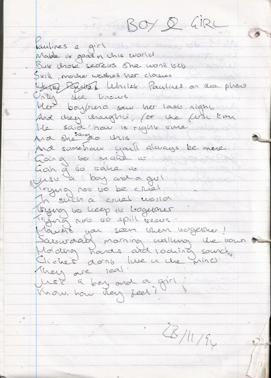 Boy and Girl – Written Tuesday 28th November 1994 (Aged 19)