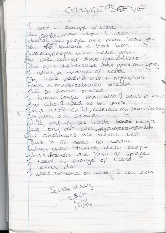 Change of Scene – Written Saturday 26th November 1994 (Aged 19)
