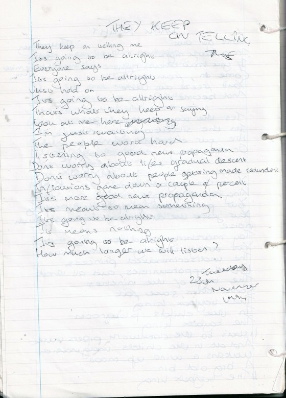 They Keep On Telling Me – Written Tuesday 28th November 1994 (Aged 19)
