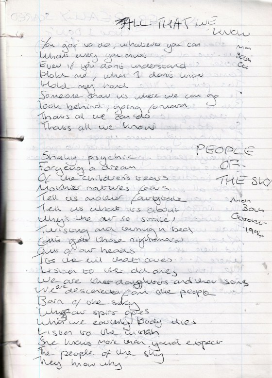 People of the Sky – Written Monday 31st October 1994 (Aged 19)